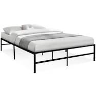 Adoptez le sommier double TULSA 140 x 190 cm et apportez une touche moderne à votre chambre à coucher ! Classique et intemporel, ce sommier en métal noir s'intègrera parfaitement à votre intérieur.Ses dimensions de 140 x 190 x 35 cm sont idéales pour les petits espaces ! Parfait lorsqu'on souhaite meubler une petite chambre ou un studio par exemple. Sa hauteur de 35 cm vous permet de glisser facilement des boites de rangement, bacs en plastique ou en tissu sous votre lit pour y ranger quelques vêtements, du linge de lit ou encore des bibelots et ainsi conserver un espace de vie ordonné en toute occasion. Vous pouvez tout à fait associer le cadre de lit TULSA avec une jolie tête de lit au design industriel par exemple et ainsi créer un véritable espace factory dans votre chambre à coucher !Sa structure robuste en métal noir est à la fois facile à assembler et à nettoyer. Grâce à ses 9 pieds, le lit TULSA vous garantit stabilité et durabilité dans le temps. Ses 20 lattes quant à elles, vous offriront tout le soutien nécessaire pour des nuits confortables au quotidien.Craquez pour le sommier TULSA en métal noir et aménagez votre chambre principale, studio ou chambre d'amis en un rien de temps ! Sommier vendu sans matelas.Dimensions du sommier double TULSA en métal noirDimensions globales : Longueur 190 cm x largeur 140 cm x Hauteur 35 cm Hauteur cadre de lit : 35 cm Lattes : 20 pièces Matériaux : Métal 40 x 20 mm Coloris : Noir À monter soi-mêmeDécouvrez également l'ensemble de nos lits doubles disponibles sur notre boutique en ligne !