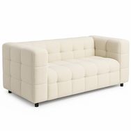 Canapé droit 2 places capitonné AMANCE en tissu bouclette beige