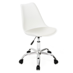 Découvrez la chaise de bureau scandinave SARA blanche à roulettes. Son design épuré associé à son pied en métal chromé lui donnent une allure élancée qui ne surchargera pas votre espace bureau !Son coloris blanc intemporel et passe-partout se mariera à coup sûr avec votre intérieur.Conçue en polypro
