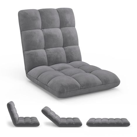 Chaise de sol pliante GARANCE 15 positions en velours gris anthracite