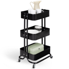 Organisez et optimisez votre espace grâce à ce chariot. Que vous ayez besoin d'une desserte pour ranger vos loisirs ou d'une structure pour organiser votre salle de bain, vous venez de trouver la solution parfaite. Avec ses 3 paniers en métal ajouré, organisez votre espace selon vos besoins. Rangez vos petits bols, épices, livres et boîtes à thé sur ce chariot à roues multidirectionnelles. Ultra pratique, faites rouler la desserte et rangez-là lorsque vous n'en avez pas besoin. Servez-vous de ses paniers aussi bien dans votre intérieur que dans votre garage ! La desserte en métal noir se fondera parfaitement dans l'ensemble de vos pièces. N'hésitez plus et optez dès à présent pour la solution de facilité. Dimensions du chariot 3 niveauxDimensions globales : Longueur 44 x largeur 36 x Hauteur 75 cmDimensions du panier haut : L. 38,5 x l.27,5 x H.8 cmDimensions du panier central : L. 39,5 x l. 28, x H. 8 cmDimensions du panier bas : L. 40,5 x l. 29 x H. 8 cmMatériaux : MétalColoris : NoirÀ monter soi-mêmeRetrouvez l'ensemble de nos accessoires de cuisine sur notre boutique en ligne !