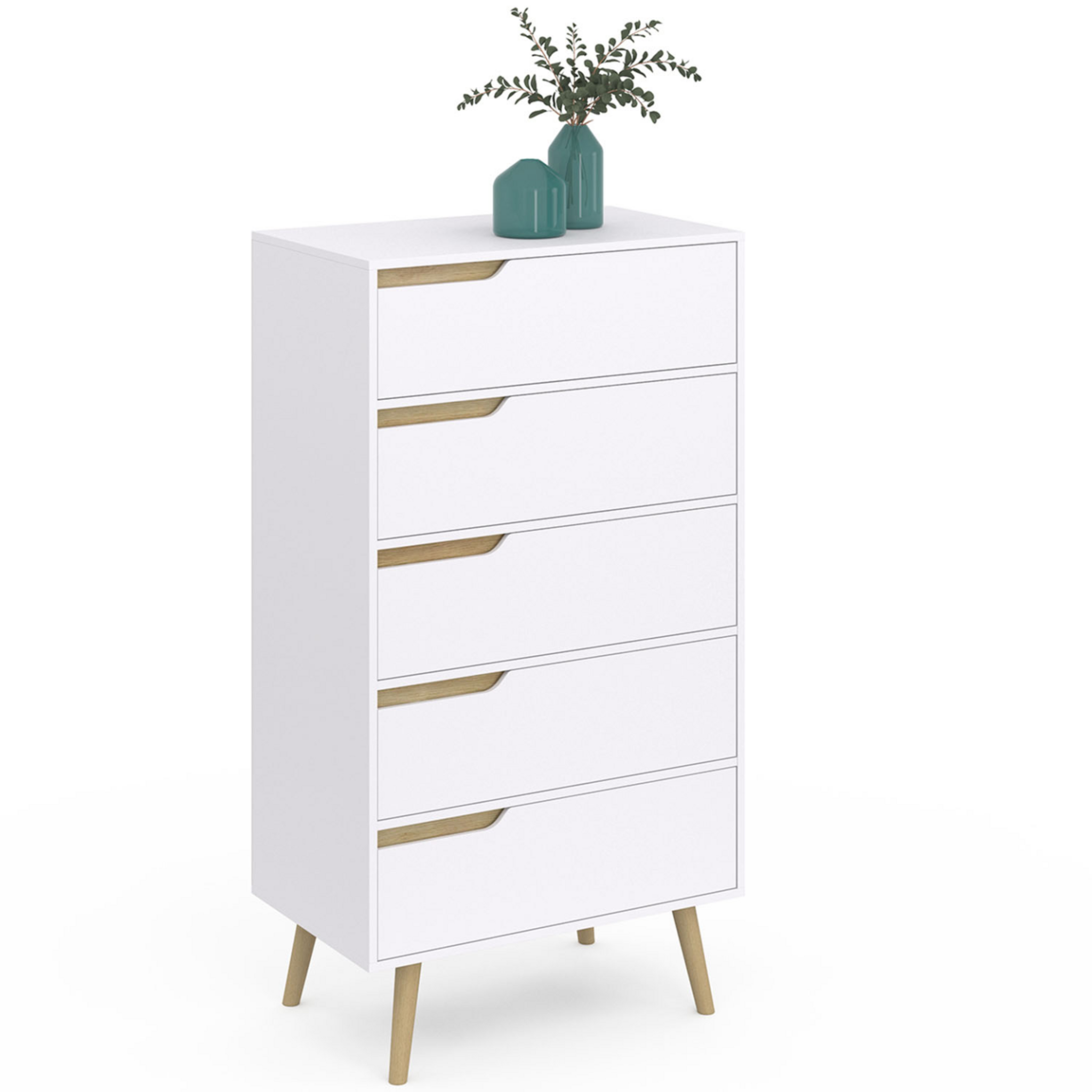 Chiffonnier 5 tiroirs HELSINKI 60 cm scandinave blanc commode semainier