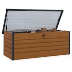 Coffre de rangement métal verrouillable effet bois et gris pour jardin 600L 165x70x63 cm