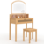 Créez un véritable espace beauté dans votre chambre ou votre dressing avec la coiffeuse EDHEN. Le mélange de la couleur du bois associé à un effet cannage naturel apportera chaleur et modernité à votre intérieur.À la fois pratique et ultra fonctionnelle, la coiffeuse EDHEN a tous les atouts pour simplifier vos séances coiffures et maquillages au quotidien !Équipée d'un miroir LEDS, réglable en 3 couleurs et en intensité, idéale pour se maquiller, cette coiffeuse vous garantit la luminosité parfaite pour un teint unifié et un maquillage réussi en toute occasion !Profitez de son grand tiroir coulissant pour y entreposer vos ustensiles de coiffure, palettes de maquillage et produits de beauté et ainsi les avoir à portée de main tout en gardant votre espace beauté toujours ordonné.De plus, les 3 niches situées sous le tiroir vous permettent d'y exposer vos vernis à ongles, parfums et soins du quotidien. Vous pouvez également choisir de simplement y déposer une petite plante ou quelques éléments de déco pour une coiffeuse plus cocooning et en harmonie avec votre décoration intérieure. Prenez place sur son tabouret assorti et profitez de longs moments de détente pour vous apprêter au quotidien. Vous pourrez ranger aisément le tabouret sous la coiffeuse lorsque vous n'en aurez plus besoin. N'hésitez pas à y ajouter un coussin moelleux en harmonie avec votre décoration intérieure pour un espace beauté personnalisé. Vous êtes désormais assurée de passer vos séances beauté quotidiennes, toujours confortablement installée.Craquez pour la coiffeuse EDHEN, et prenez soin de vous en toute sérénité.Dimensions de la coiffeuse EDHENDimensions globales : Longueur 80 cm x largeur 40 cm x Hauteur 140 cmDimension miroir : L.70 x H.50 cm1 tiroir : L.68 x l.33.5 x H.10 cmMiroir LED intégré réglable en 3 couleurs et en intensité3 niches sous le miroir : L.25 x l.10 x H.12 cmDimension tabouret : L.34 x l.34 x H.41 cmColoris : boisMatériaux : Panneaux de particules de bois et cannage plastiqueÀ monter soi-mêmeRetrouvez l'intégralité de nos coiffeuses sur notre boutique en ligne !