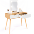 Coiffeuse scandinave 2 tiroirs LIVIA bois et blanc avec miroir LED