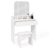 Coiffeuse ZELIA 3 miroirs avec 4 niches, 1 tiroir et tabouret