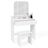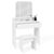Aménagez dans votre chambre ou votre dressing, l'espace idéal pour vous apprêter au quotidien avec la coiffeuse ZELIA et son miroir tryptique.Pratiques et fonctionnels les 3 miroirs faciliteront vos séances de coiffure et de maquillage pour une mise en beauté réussie !Le grand tiroir situé sous le plateau vous permettra de ranger tout votre maquillage, vos ustensiles de coiffure ou encore produits de beauté ! Profitez également des 4 niches situées sous le miroir pour exposer vos vernis, parfums et soins du quotidien. Vous pouvez également choisir d'y installer quelques éléments de décoration comme une plante ou un petit cadre photo pour un effet encore plus cocooning ! De plus, les 12 crochets situés à l'arrière des 2 volets rabattables vous permettront d'accrocher vos bijoux préférés : bracelets, colliers ou encore sautoirs et de les conserver ordonnés et à portée de main. Terminé les affaires qui trainent, soyez assurés d'avoir un espace coiffure et maquillage toujours bien ordonné. La coiffeuse ZELIA est aussi composée d'un tabouret blanc assorti. Ajoutez-y un coussin moelleux en harmonie avec votre décoration intérieure et le tour est joué ! Vous êtes désormais assurée de passer vos séances beauté quotidiennes, en étant toujours confortablement installée.Alors n'hésitez plus et craquez pour la coiffeuse ZELIA 3 miroirs et prenez soin de vous en toute sérénité. Dimensions de la coiffeuse ZELIA 3 miroirsDimensions globales : Longueur 80 x largeur 40 x Hauteur 140 cmDimension tabouret : L. 40 x l. 29,5 x H. 40,5 cm1 tiroir de dimensions : L. 76,5 x l. 29 x H. 14 cm4 niches de dimensions : L. 18,5 x l. 10 x H. 10 cmDimensions partie miroir fermée : L. 30 x H. 54 cmDimensions partie miroir ouverte : L. 61 x H. 54 cmDimension miroir centrale : L. 30 x H. 54 cmDimensions miroir latéral : L. 15 x H. 54 cm12 crochets en métal argentéMatériaux : panneaux de particules de bois (PB) - épaisseur 15 mmColoris : blancÀ monter soi-mêmeLa coiffeuse ZELIA existe également dans d'autres versions : - Coiffeuse ZELIA blanche 4 étagères, miroir LED et tabouret- Coiffeuse ZELIA blanche 4 niches, miroir LED et tabouretDécouvre également l'ensemble de nos coiffeuses sur notre boutique en ligne !