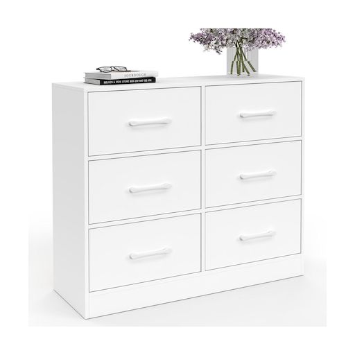 Commode 6 tiroirs en tissu UPPAH 80 cm meuble de rangement bois blanc