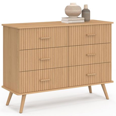 Commode 6 tiroirs JULIETTE 110 cm effet lattes tasseau bois coloris chêne