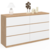 Commode 6 tiroirs TOMI XXL 140 cm bois façon hêtre et blanc