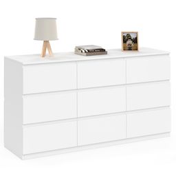 Commode 9 tiroirs TOMI XXL 136 cm bois blanc