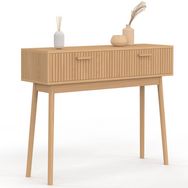 Console 2 tiroirs JULIETTE lattes tasseau bois coloris chêne