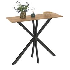 Habillez votre entrée à prix mini avec notre console pied araignée ALIX ! Plus besoin de choisir entre fonctionnalité et style, cette console coche toutes les cases et donnera du caractère à votre intérieur en un tour de main ! Créez une ambiance tendance dans votre entrée, chambre ou salon grâce aux lignes design de cette jolie console. Les dimensions astucieuses du plateau vous permettent d'y disposer tablette, lampe d'appoint, et de mettre en valeur déco et petite plante verte. Elle peut également vous servir de bureau d'appoint dans une pièce palière !Ses formes travaillées donneront un esprit chic et élégant à ce meuble d'entrée tout en lui assurant stabilité et robustesse avec sa structure en panneaux de particules et métal. Sublimez dès maintenant votre intérieur avec la console ALIX bicolore et son pied araignée qui apporteront une réelle valeur ajoutée à votre entrée ou à votre séjour en toute simplicité !Dimensions de la console ALIX pied araignéeDimensions globales : Longueur 90 cm x largeur 30 cm x Hauteur 80 cmDimensions des pieds : L. 98,5 x l. 29 cmMatériaux : plateau en panneaux de particules et pieds en métal Coloris : bois et noirÀ monter soi-mêmeRetrouvez l'ensemble de notre collection industrielle sur notre boutique en ligne !