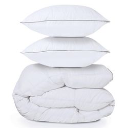 Couette 220x240 CM AELA en plume d'oie anti acarien 500 gr + 2 oreillers