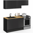 Cuisine complète 180 cm SUBTIL avec plan de travail 5 éléments noir et plateaux bois