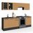 À la recherche d'une cuisine bois et noir complète de 240 cm pour meubler votre intérieur ? Partez sans attendre pour la cuisine SUBTIL 7 éléments ! Élément principal de votre intérieur, le choix de votre cuisine est primordial. Grâce à son plan de travail effet béton de 2,5 cm d'épaisseur et 90 cm de hauteur, vous n'aurez pas à vous pencher lorsque vous préparerez de bons petits plats pour vos proches. Stockez vos cocottes et casseroles dans les meubles bas de 60 cm et 40 cm avec tiroir. Le meuble de 80 cm sans étagère est conçu pour recevoir votre évier ainsi que la tuyauterie. De plus, vous pouvez découper le plan de travail selon vos dimensions d'évier. Pour une harmonie dans votre intérieur, à chaque meuble bas de cuisine correspond un meuble haut de même longueur. Vous pouvez organiser votre stockage dans les meubles hauts selon votre besoin. Le meuble hotte est quant à lui muni d'une porte à battant relevable. D'une profondeur de 32 cm chacun, les meubles hauts de cuisine vous permettent de stocker vos verres comme vos condiments ainsi que d'exposer votre vaisselle dans les 2 compartiments avec vitrine.Grâce à ses 7 éléments, la cuisine complète avec plan de travail vous offre une solution clé en main ! N'hésitez plus et craquez pour son design moderne et tendance !Le plan de travail aux finitions soignées style ardoise de 60 cm de profondeur dépasse légèrement des meubles bas pour un rendu plus esthétique et une meilleure aisance de nettoyage. Conseil IDMarket : pensez à bien séparer votre four et vos plaques d'au moins 40 cm d'un point d'eau (lave-vaisselle - évier). Ne posez pas de plats chauds directement sur votre plan de travailNos cuisines SUBTIL 180 et 240 cm sont livrées sans électroménager.Dimensions de la cuisine SUBTIL 2m40 effet bois et noirDimensions globales : Longueur 240 cm x largeur 60 x Hauteur 90 cmÉpaisseur du plan de travail : 2,5 cmÉlément du bas 40 cm avec tiroir : L. 40 x l. 60 x H. 90 cm Élément du bas 60 cm : L. 60 x l. 60 x H. 90 cmÉlément du bas 80 cm dessous vasque - 2 portes : L. 80 x l. 60 x H. 90 cmÉlément du haut 40 cm : L. 40 x l. 32 x H. 58 cm Élément du haut 60 cm - hotte : L. 60 x l. 32 x H. 35 cm Élément du haut 60 cm : L. 60 x l. 32 x H. 58 cmÉlément du haut 80 cm - 2 portes : L. 80 x l. 32 x H. 58 cm Matériaux : Panneaux de particules mélaminés (PB) et portes transparentes en PVC pour l'élément du haut 80 cmColoris : Bois, effet béton et noirPoids max supporté par étagère : 30 kg pour les meubles suspendus et 80 kg pour les meubles du basÀ monter soi-mêmeRetrouvez l'ensemble de nos cuisines complètes sur notre boutique en ligne !