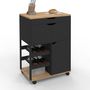 Desserte de cuisine COSY avec placards et range bouteilles bois et noir