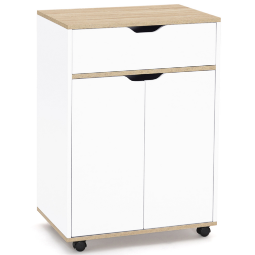 Découvrez sans plus attendre notre desserte de cuisine COSY avec tiroir bois blanc et plateaux façon hêtre. Voilà le meuble parfait pour l'optimisation de votre espace ! Composée d'un large placard, empilez toute votre vaisselle, torchons, conserves ou produits d'entretien dans cet espace fermé, très pratique pour dissimuler votre petit bazar de cuisine. Son large plateau sur le dessus, vous permettra de cuisiner ou continuer votre rangement ou d'y déposer votre micro-ondes. Ses multifonctions ne s'arrêtent pas là : au-dessus du placard, vous trouverez un tiroir, idéal pour y entreposer vos couverts et autres ustensiles de cuisine. Dotée de 4 roulettes directionnelles, vous pouvez la déplacer très facilement, tout en gardant à portée de main vos condiments pendant que vous cuisinez.Grâce à son côté bicolore blanc et bois, cette desserte apportera une touche de modernité à votre cuisine et se mariera parfaitement avec votre décoration intérieure.Besoin de gagner de l'espace dans votre cuisine ? Laissez-vous séduire par cette desserte roulante, ultra design et fonctionnelle, qui ravivera votre déco intérieure en un tour de main !Dimensions de la desserte COSY tiroir bois blanc et plateaux façon hêtreDimensions globales : Longueur 60 cm x Profondeur 39.5 cm x Hauteur 85 cmDimensions intérieures du tiroir : L. 52 x P. 29 x H.14.3 cmDimensions intérieures du placard : L. 57 x P. 38 x H.59 cmÉtagère ajustable à l'intérieurPanneaux de particules 12 et 15 mmColoris : bois blanc et plateaux façon hêtreÀ monter soi-même (visserie incluse)Retrouvez l'ensemble de nos meubles et éléments de cuisine sur notre boutique en ligne !
