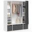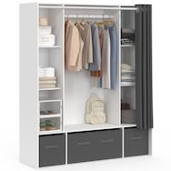 Dressing double penderie DIANE 140 x 45 x 167 cm blanc avec étagères + boites de rangement + rideau gris