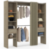 Dressing extensible double MERYL 120/180 x 50 x 180 cm hêtre avec étagères + double penderie + rideau taupe