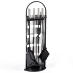 Ensemble serviteur de cheminée noir inox 5 éléments pelle balai tisonnier pince avec support