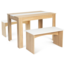 Vous aimez les repas conviviaux en famille ou recevez souvent des convives ? Il vous faudra une table à manger adaptée et les assises associées pour pouvoir accueillir tous vos invités ou tous les membres de votre famille, sans pour autant encombrer votre espace inutilement le reste du temps.Offrez-vous notre table à manger de 4 personnes hêtre et blanc et ses 2 bancs assortis et faites entrer le style contemporain dans votre salon, cuisine ou dans votre salle à manger!Leur design moderne, raffiné, et leurs finitions mates soignées s'associeront parfaitement à votre mobilier!Les lignes sobres et harmonieuses de cette table et de ses 2 bancs et leurs couleurs chaleureuses et contrastées apporteront une ambiance à la fois tendance et chic à votre intérieur!La partie centrale blanche de cette jolie table imitation hêtre, telle un chemin de table, habilleront votre mobilier et vous dispenseront d'y ajouter de la décoration ou même une nappe. Jolie, et nette, tels sont les maîtres-mots de cette table pratique aux dimensions pensées pour les espaces plus restreints! Le dessus du banc, blanc, rappelle subtilement la partie centrale de la table pour former un ensemble élégant.Stable et robuste, avec sa structure en PB (panneaux de particules de bois épaisseur 1,5 cm) cette table ultra fonctionnelle au plateau généreux d'une largeur de 70 cm sera l'élément central de votre salle à manger. Les bancs, à la largeur d'assise optimisée, sont également dotés d'un renfort discret pour plus de solidité et de sûreté.La taille et le format rectangulaire compact de cette table vous permettront d'accueillir à tout moment 4 invités confortablement installés autour de la table. Les dimensions des bancs ont été spécialement conçues pour les ranger sous la table afin d'avoir une pièce de vie dégagée et agréable en dehors des repas.Dimensions de la table à manger ROZY 4 personnes + 2 bancsDimensions totales : Longueur 110 cm x largeur 70 cm x Hauteur 73 cmDimensions des pieds : L. 9,5 x l. 9,5 x H. 71,5 cmEspace entre les pieds sur la longueur : 88,5 cmEspace entre les pieds sur la largeur : 48,5 cm4 pieds en boisDimensions du banc : Longueur 86,5 x largeur 33 x Hauteur 44 cmCapacité 4 personnesÀ monter soi-mêmeRetrouvez tous les coloris et modèles de tables modernes sur notre boutique en ligne !