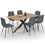 Vous souhaitez créer une ambiance moderne et chaleureuse dans votre salle à manger ? Craquez pour cet ensemble de table à manger ALIX et de chaises MILA, une combinaison parfaite entre design industriel et confort contemporain.La table à manger ALIX 160 cm séduit par son plateau effet bois reposant sur un pied araignée en métal noir, original et robuste. Son style loft new-yorkais s'intègre facilement dans tous les intérieurs, du plus urbain au plus cosy.Avec ses dimensions généreuses (160 x 90 cm), elle permet de réunir jusqu'à 6 à 8 personnes autour d'un bon repas. Sa structure en panneaux de particules mélaminés et son piètement métallique assurent stabilité et durabilité au quotidien.Les 6 chaises MILA viennent compléter cet ensemble avec élégance. Leur revêtement en velours matelassé gris foncé et leur dossier ergonomique offrent une assise confortable, idéale pour de longs moments à table.Leur piètement en métal noir mat rappelle subtilement la structure de la table pour un rendu harmonieux et raffiné.Si vous aimez les ambiances industrielles modernes cet ensemble de table et chaises est fait pour vous !À vous les repas conviviaux et les moments de partage en toute élégance !Dimensions de l'ensemble table ALIX et 6 chaises MILA :Dimensions globales : Longueur 160 cm x largeur 90 cm x Hauteur 75 cmMatériaux : Panneaux de particules et pieds en métal noirColoris : Bois et noirCapacité : Jusqu'à 8 personnesDétails : Plateau coupé en 2 et pied araignée centralÀ monter soi-mêmeDimensions globales : Longueur 46 cm x largeur 55 cm x Hauteur 88 cmDimensions assise : L. 46 x l. 41 x H. 45 cmMatériaux : Assise en velours et pieds en métalColoris : Gris foncéÀ monter soi-mêmeRetrouvez l'intégralité de notre collection industrielle sur notre boutique en ligne !