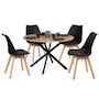 Ensemble table à manger ronde ALIX 110 cm bois et noir et 4 chaises SARA noires