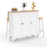 Optimisez et organisez l'espace de votre cuisine grâce à notre ensemble table de bar îlot ACHILLE avec plan de travail et rangements bois et blanc et nos tabourets ronds !Avec ses coloris intemporels et ses lignes sobres et épurées, le mange-debout ACHILLE se mariera avec tous les types d'intérieurs