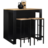 Ensemble table de bar îlot JUNO bois noir avec plateau façon hêtre et 2 tabourets de bar DETROIT