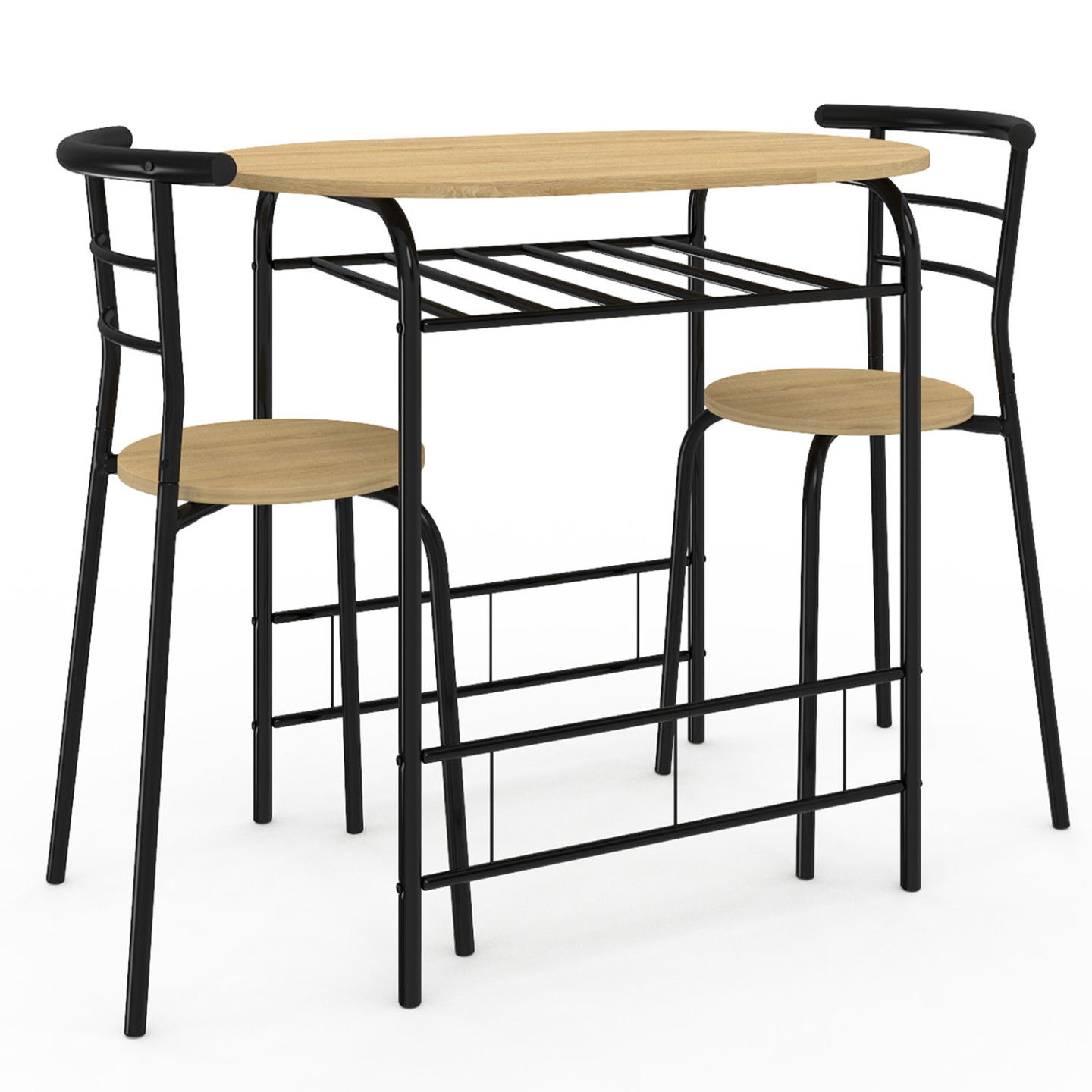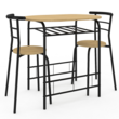 Ensemble table LYNETH 2 personnes + 2 chaises bois et métal noir