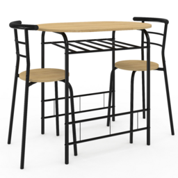 Offrez à votre intérieur une touche moderne et industrielle avec cet ensemble table à manger et chaises LYNETH au design industriel moderne. Conçu pour accueillir 2 personnes, il allie parfaitement esthétique et fonctionnalité, tout en s'intégrant harmonieusement à divers styles d'intérieurs. Le mélange unique du bois chaleureux et du métal robuste apporte un look industriel contemporain, qui sublime votre salle à manger ou votre cuisine.Cet ensemble n'est pas seulement esthétique, il est aussi conçu pour s'adapter à la vie quotidienne. Compact et ergonomique, il trouvera sa place aussi bien dans une cuisine que dans une petite salle à manger, tout en apportant une touche de modernité.Avec son design industriel moderne, inspiré des lofts urbains, cet ensemble LYNETH marie à merveille des matériaux bruts pour un look tendance et épuré.Idéal pour des repas en famille ou entre amis, cet ensemble compact permet d'optimiser l'espace tout en offrant confort et convivialité.Astucieux son range bouteille placé juste en dessous du plateau de la table à manger, vous permettra de stocker jusqu'à 5 bouteilles.Sa structure métallique solide et son plateau façon bois assure robustesse et stabilité pour vos repas.Si vous souhaitez allier gain de place et confort, laissez-vous séduire par l'ensemble table à manger et chaises en bois et métal noir LYNETH. Profitez de moments conviviaux réussis en famille ou entre amis !Dimensions de l'ensemble table + 4 chaises LYNETHDimensions de la table: Longueur 80 cm x largeur 53 cm x Hauteur 75 cmColoris : bois/noirÀ monter soi-mêmeDimensions des chaises : Longueur 41 cm x largeur 35 cm x Hauteur 77 cmDimensions assises : 35 x 35 x 46 cmColoris : bois/noirÀ monter soi-mêmeRetrouvez également l'ensemble de nos modèles de tables et de notre collection industrielle sur notre boutique en ligne !