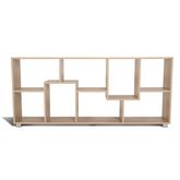 Apportez une touche contemporaine à votre intérieur et facilitez-vous le rangement avec notre étagère à double position en bois imitation hêtre Longueur 161 cm.Grâce à son design géométrique et moderne, elle s'adapte parfaitement à votre salon et lui offre une touche de modernité.Vous avez le choix de l'utiliser de différentes manières selon vos envies ! En position horizontale, elle fait office de meuble TV ou buffet et en position verticale elle devient une bibliothèque ou une étagère. Cette étagère vous offre de nombreuses niches de rangement. Stable et robuste, sa structure est en panneaux de particules de bois (PB épaisseur 1,5 cm).Dimensions du meuble étagère en bois imitation hêtreDimensions totales : Longueur 161 cm x largeur 25 cm x Hauteur 67,5 cmDimensions des pieds : Longueur 5 x largeur 5 x Hauteur 4 cmNombre de pieds fournis : 5Matériaux : Structure en panneaux de particules de boisÀ monter soi-mêmeModèle disponible en différents coloris sur notre boutique en ligne :- Étagère à double position bois blanc L 161 cm