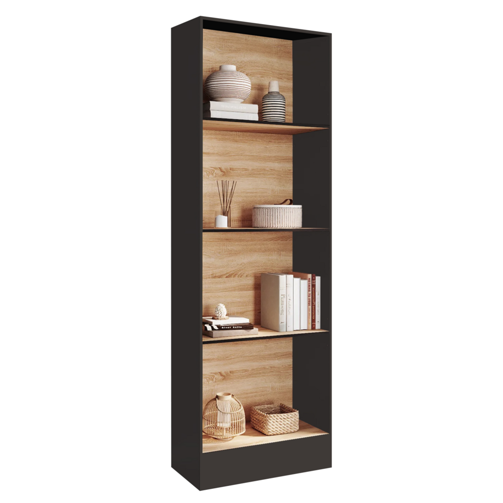 Etagère bibliothèque CARLA 5 niveaux noir et effet bois 190 cm