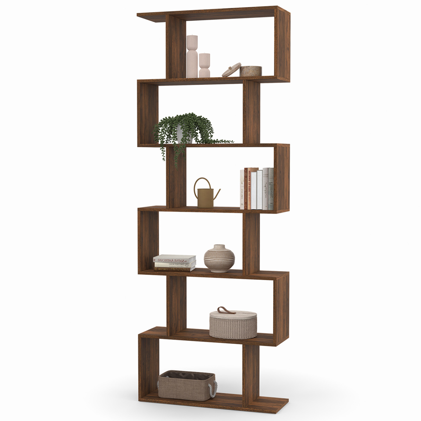 Facilitez-vous le rangement et apportez une touche contemporaine à votre intérieur avec notre étagère 6 niveaux forme S SOFIA.Son design original et moderne en forme S, et sa couleur effet noyer et intemporelle lui permettent de s'adapter à votre salon, salle à manger ou encore à votre chambre.Utili