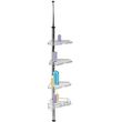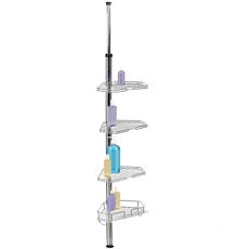 Optimisez le rangement de votre douche et gardez toujours bien ordonnés vos shampoings, savons et gels lavants!Equipé de 4 tablettes ajustables selon votre besoin en hauteur, ce serviteur d'angle est doté de 2 crochets pour suspendre vos gants de toilette et autres fleurs de douche. Facile à installer, sans clou ni vis, placez cette étagère dans l'angle de votre douche ou de votre baignoire et positionnez-là simplement entre le sol et le plafond grâce à son système de ressort. Gain de place maximal et produits d'hygiène toujours à portée de main !Dimensions : 17.7 x 17.7 x Ajustable jusqu'à H.260 cm.Dimensions plateaux des étagères : 30 x 19 x H. 5,5 cmTubes : 22 mm et 12 mm de diamètre en acier inoxydable haute qualité.4 tablettes2 crochets spécial accessoires
