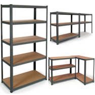 Votre garage devient vite un vrai capharnaüm ? Outils de bricolage, de jardinage, affaires pour vos loisirs... De nombreux objets et outils trouveront leur place sur cette étagère de garage grise à prix exceptionnel. L'étagère de garage ID Market s'adapte à vos besoins en étant modulable. En effet, d'une étagère haute à 5 plateaux, transformez-la en deux étagères distinctes pour former un établi.Grâce à sa structure en acier galvanisé grise et à ses plateaux résistants en bois aggloméré, stockez des éléments volumineux et lourds sans risque. Cette étagère charges lourdes saura devenir indispensable pour vous faire gagner de l'espace dans votre garage ou votre atelier en assurant un port de charge allant jusqu'à 875 kg.Adaptée à tous les espaces, posez-la contre un mur ou alignez plusieurs étagères de garage pour délimiter un espace bricolage, jardinage ou autre sans vous ruiner.En plus d'être modulable selon vos besoins, ce meuble est particulièrement simple à monter tout en restant solide et robuste. Son système de clips métalliques et de croisillons lui assure une stabilité parfaite, assurant votre sécurité et celle de sa charge.Dimensions de l'étagère modulable en métal grise- Dimensions totales : Longueur 90 CM x largeur 40 CM x hauteur 180 CM- Structure en acier galvanisé peinte en grise, épaisseur 0,8 MM- 5 plateaux en bois aggloméré (MDF), épaisseur de 4,7 MM- Capacité max : 175 kg par plateau avec une répartition uniforme des charges - Total : 875 kg - Montage facile et rapide grâce à un système de clips et de croisillons pour une meilleure stabilitéPour les expéditions en Corse, offre limitée à 2 étagères par commande.Découvrez également toutes nos étagères charges lourdes disponibles sur notre boutique en ligne !