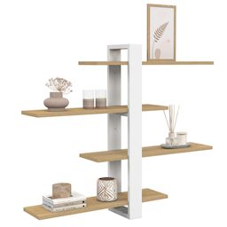 Laissez-vous séduire par notre étagère murale ORA 4 niveaux façon hêtre et blanc, au design moderne et modulable.Cette étagère murale est une solution de rangement élégante et astucieuse, idéale pour optimiser l'espace tout en apportant une touche déco moderne à vos murs.Son design épuré s'intègre p