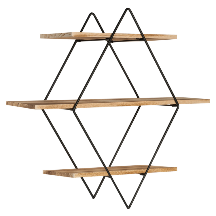 Etagère murale losange LILY 3 niveaux bois et métal design industriel