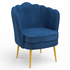 Fauteuil coquillage ADELLA bleu nuit en velours pieds dorés