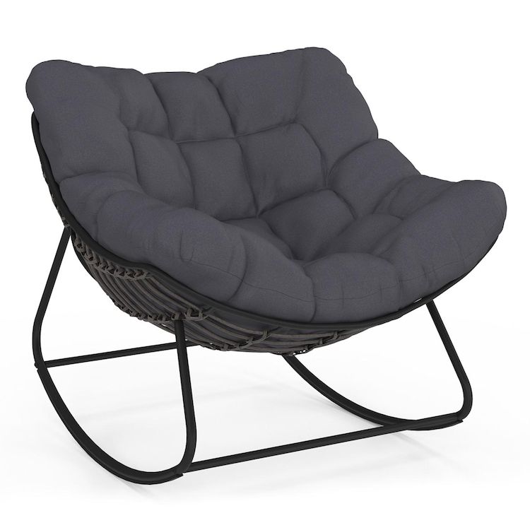 Fauteuil de jardin à bascule LOA effet rotin gris avec coussin gris