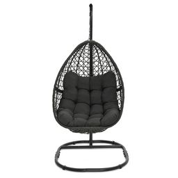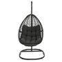 Accordez-vous un moment de détente dans ce fauteuil lune suspendu au design sobre et élégant et profitez de son mouvement de balancier pour vous reposer en toute tranquillité !Le fauteuil, avec son design tendance lune en résine tressée s'accordera aussi bien à votre décoration intérieure qu'extérieure. Fourni avec un socle, vous n'aurez pas besoin d'accrocher votre fauteuil au plafond. Son large pied en acier noir ainsi que la chaine et le ressort qui l'accompagnent sont autant d'éléments qui vous assurent une bonne stabilité. Profitez ainsi du mouvement de balancier en toute sécurité.Ce socle vous permet également de déplacer votre fauteuil suspendu où bon vous semble en fonction des saisons et en profiter ainsi dans votre salon en hiver ou au bord de votre piscine en été. De plus, avec son coussin gris de 15 cm d'épaisseur, ce siège ultra confortable deviendra rapidement un élément indispensable pour vos moments de détente. Robuste, ce fauteuil lune peut supporter un poids jusqu'à 100 kg. N'hésitez plus et craquez pour le fauteuil lune suspendu ajouré avec coussin gris !Dimensions du fauteuil lune suspendu noir et coussin gris Dimensions globales : Longueur 95 cm x largeur 106 cm x Hauteur 198 cmDimensions du fauteuil : L.88 x l.64 x H.112 cmDimensions du pied : L.95 x l.106 x H.198 cmStructure en acier noirCoussin en polyester gris, grammage 200DDiamètre des tubes : 4,2 cmEpaisseur du coussin : 15 cmDécouvrez notre collection de fauteuils suspendus : - Fauteuil oeuf suspendu ajouré noir avec coussin gris- Fauteuil oeuf suspendu ajouré avec coussin grisRetrouvez également tous nos fauteuils de jardin disponibles sur notre boutique en ligne !