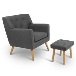 Fauteuil scandinave LIV avec repose pieds en tissu gris anthracite