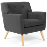 Descriptif du fauteuil gris anthraciteAdoptez la tendance chic de la décoration nordique, grâce à ce fauteuil scandinave gris. Avec ses belles formes arrondies, le fauteuil nordique gris anthracite ID Market est le parfait mélange de l'élégance et du confort. Avec une belle assise rembourrée et deux accoudoirs confortables, ce meuble sera le parfait compagnon de vos moments de lecture au calme.Vous recevez dans votre salon ? Le fauteuil gris anthracite que vous propose ID Market s'associera aisément à votre canapé pour créer un espace cosy, idéal pour de longues discussions ou pour visionner un film avec vos invités. Choisissez le bon emplacement pour ce meuble tendance ! Proche de la fenêtre pour profiter de la luminosité, en face d'une télé, en diagonale de l'espace salon pour jouer son rôle de fauteuil d'appoint.... Il existe de nombreuses possibilités.Craquez pour ce fauteuil scandinave gris et son look intemporel. Pour un intérieur personnalisé et créer un véritable cocon de confort, agrémentez-le d'un ou deux coussins colorés, ou bien d'un plaid doux et chaud. Vous aimez l'association du bois et du tissu gris ? Alors adoptez un fauteuil style scandinave, pour un intérieur tendance et cosy.Son revêtement en tissu 100 % polyester capitonné et ses 5 boutons aux finitions travaillées achèvent de parfaire son design simple et élégant. Pour un entretien facilité, le coussin moelleux et épais est totalement amovible, idéal pour un nettoyage simple et efficace.Dimensions du fauteuil scandinaveMatériaux : structure en bois (hévéa)Pieds bois avec patins de protectionScratch antiglisse sous le coussin amovibleGarnissage : mousse polyuréthane (recyclée et non recyclée)Dimensions totales : Longueur 74 cm x largeur 75 cm x hauteur 79 cmDimensions de l'assise : Longueur 48 cm x largeur 50 cm x hauteur 44 cm (Densité de la mousse : 48 kg / m3)Dimensions des accoudoirs : Longueur 9 cm x largeur 42 x hauteur 20 cm (Densité de la mousse : 20 kg / m3)Hauteur du dossier à partir du coussin : 40 cm (Densité de la mousse : 22 kg / m3)Hauteur des pieds : 23 cmRevêtement en tissu 100% polyester capitonné 5 boutons coloris gris anthraciteColoris disponibles sur notre boutique en ligne :BLEU CANARDJAUNE MOUTARDEGRIS ANTHRACITELIVRAISON EN FRANCE METROPOLITAINE UNIQUEMENT (HORS CORSE - HORS BELGIQUE)