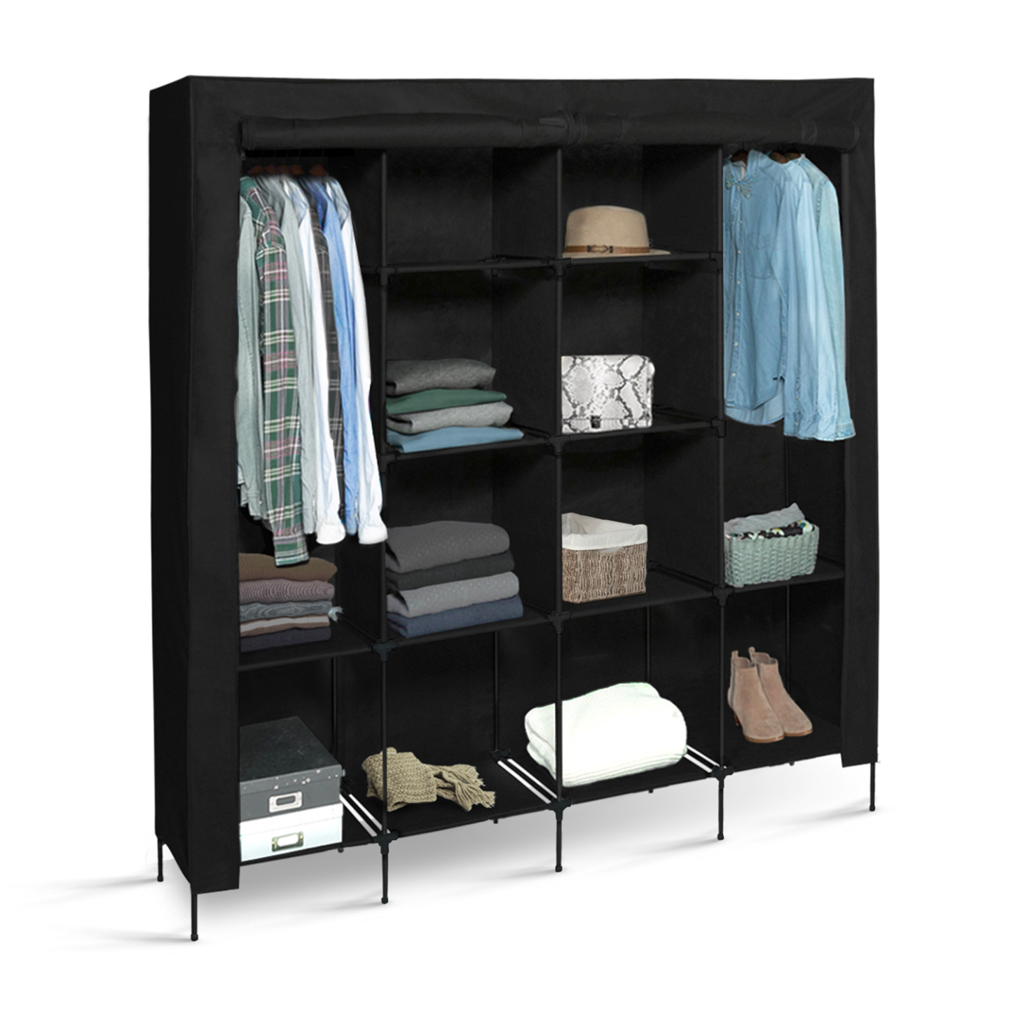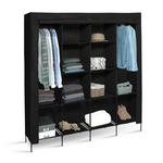 Descriptif grande armoire de rangement noire DOUBLE penderie XXL tissuProfitez d'une capacité de rangement maximale avec ce meuble en tissu à petit prix ! Multifonction, l'armoire de rangement en tissu fait office à la fois d'étagère et de penderie ! Évitez les plis disgracieux sur votre linge en le