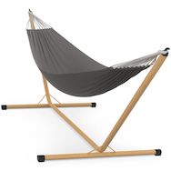 Hamac avec support métal effet bois et toile gris anthracite