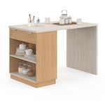 Le look tendance de cet îlot central, ses lignes sobres et épurées lui permettent de s'adapter idéalement à tout type d'intérieur ! Il conférera un aspect net et rangé à votre cuisine !Avec son grand plateau aux dimensions généreuses 130 x 80 cm, cette table de bar vous offrira un plan de travail supplémentaire pour cuisiner. De plus vous pouvez également glisser en dessous des tabourets de bar et accueillir ainsi jusqu'à 4 personnes ! Son format généreux et néanmoins compact, peu encombrant, de son côté facilite la circulation tout en évitant les pas inutiles au quotidien dans votre pièce de vie. Il structure l'espace de votre cuisine ! Parfait pour les pièces de vie ouvertes et aérées.Ultra fonctionnel, ce meuble de bar comporte plusieurs compartiments de rangements. Son grand tiroir avec encadrement permettra d'entreposer vos papiers, couverts et ustensiles de cuisine tandis que ses 2 étagères seront parfaites pour garder à portée de main condiments, verres ou encore bocaux. De quoi optimiser au maximum votre espace !Sa structure en panneaux de particules de bois (PB), lui assure stabilité et robustesse pour un usage au quotidien !Optez sans tarder pour cet îlot tendance et convivial à la fois fonctionnel et décoratif !Dimensions de l'îlot central mange-debout VITODimensions globales : Longueur 130 cm x largeur 80 cm x Hauteur 90,5 cmDimensions intérieures du tiroir : L. 69,5 x l. 33,5 x H. 14 cmDimensions des étagères : L. 75 x l. 37 x H. 29,5 cmDimensions façade du tiroir : L. 74,5 x H. 18 cmÉpaisseur plan de travail : 3 cmMatériaux : particules de bois (PB)À monter soi-mêmeProduit vendu seul, sans les tabouretsRetrouvez l'ensemble de nos meubles de cuisine sur notre boutique en ligne !
