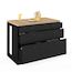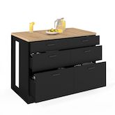 Ilot central mange-debout ORSO 120 cm casserolier 6 tiroirs noir et plateau bois