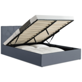 En savoir +Donnez une touche contemporaine à votre chambre à coucher avec le lit coffre double avec sommier et tête de lit AUSTIN 140 x 190 CM ! Et donnez une seconde vie à votre espace de nuit! En plus d'avoir des finitions soignées avec son revêtement polyuréthane résistant coloris gris, la structure du lit, pratique et fonctionnelle, abrite sous son sommier un grand coffre de rangement. Doté d'une jolie tête de lit travaillée, au capitonnage en forme de losange, celle-ci habille élégamment votre mur tout en vous apportant le confort et le soutien nécessaires à la qualité de votre repos et de votre sommeil.Un gain de temps et d'espace ! Fini les oreillers empilés, laissez place à une chambre rangée en toute circonstance avec le lit AUSTIN à rangement intégré. Pour votre propre chambre à coucher ou la chambre d'amis afin de recevoir famille ou invités dans une chambre ordonnée. Fonctionnel, vous pouvez y ranger draps, couettes, édredons, et vêtements volumineux, ou pourquoi pas des jeux de société !Le coffre, de la dimension du lit, est facile à ouvrir et à fermer en un instant : le sommier est relevable en un tour de main grâce au mécanisme de vérins de levage.Stable et robuste, doté de pieds intégrés à la structure et d'une barre transversale sous sommier avec 2 pieds en métal centraux.Sommier à 24 lattes en bois tout confort. Zone lombaire renforcée grâce au resserrement des lattes pour garantir un confort optimal - Facilite l'aération du matelas, et apporte flexibilité au couchage.Stylé et pratique à la fois, sa couleur passe-partout s'adapte à tous les intérieurs.Dimensions du sommier coffre gris 140 x 190 CM et tête de lit- Dimensions hors tout : Longueur 201 CM x largeur 151 CM x Hauteur 89 CM environ- Dimensions tête de lit : Longueur 151 x Hauteur 87,5 x Épaisseur 7 CM- Hauteur du cadre de lit : 30 CM - Épaisseur 3,5 CM- 6 pieds : 4 en bois et 2 en métal- Hauteur des pieds : 1,5 CM- Dimensions standard pour un matelas 140 x 190 CM 2 places- Nettoyage facile avec chiffon humide- Matelas non fourni*Produit non livrable en CorseCe modèle de lit AUSTIN est disponible dans d'autres coloris et d'autres dimensions :- Lit coffre AUSTIN PVC gris avec sommier 160 x 200 CM- Lit coffre AUSTIN PVC blanc avec sommier 140 x 190 CM- Lit coffre AUSTIN PVC blanc avec sommier 160 x 200 CM- Lit coffre AUSTIN PVC noir avec sommier 140 x 190 CMRetrouvez l'ensemble de notre gamme de lits sur notre boutique en ligne !