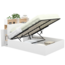 Lit coffre double CLYDE avec tête de lit + rangements et sommier 140 x 190 cm blanc et façon hêtre